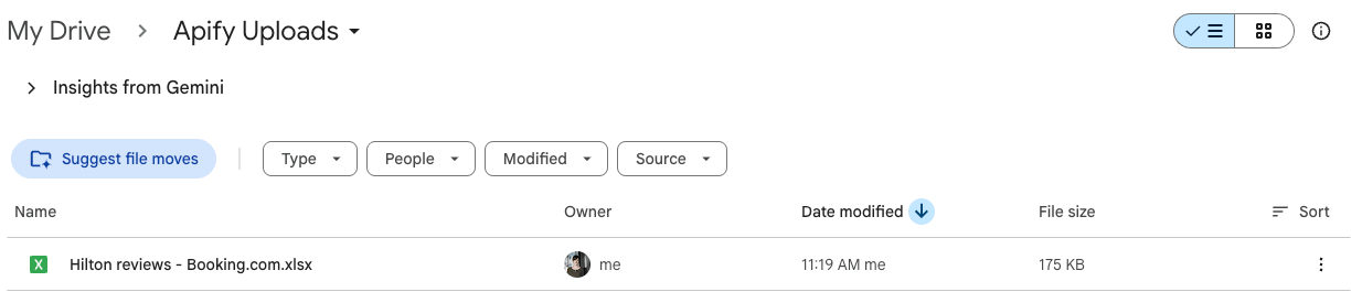 Now you can also check your Google Drive for a newly created spreadsheet with reviews. Each time you execute the scraper, it will automatically generate a new file with fresh data, ready for analysis.