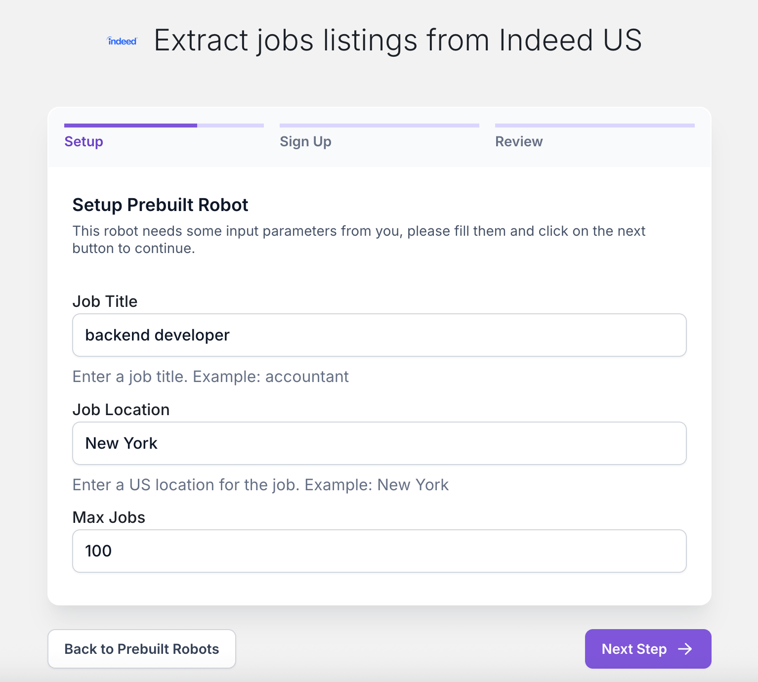 - Limited to Indeed scraping. To scrape other platforms, you need a different tool, such as a LinkedIn Jobs Scraper or Google Jobs Scraper
