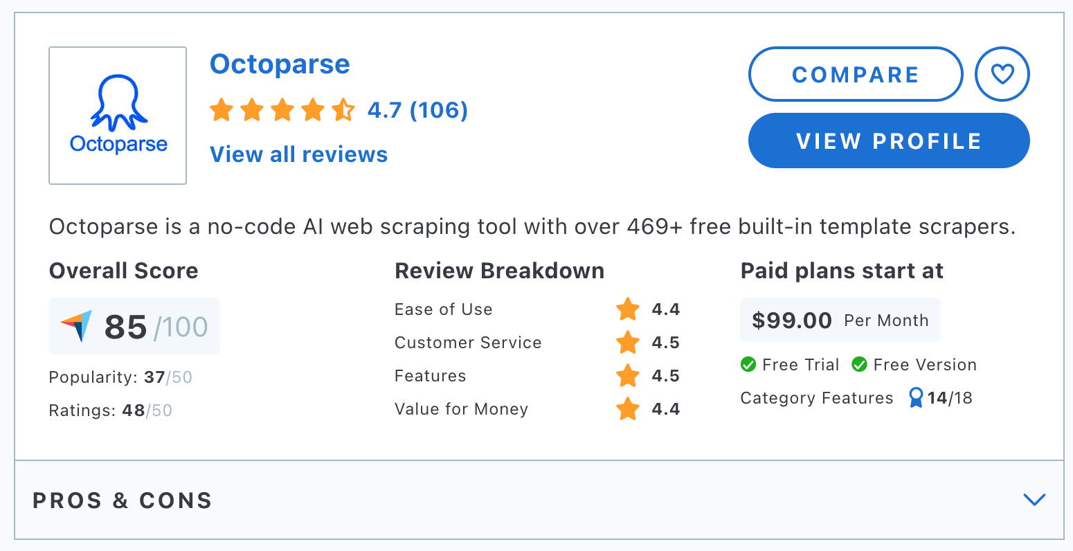 Although Octoparse is user-friendly, using some of its more advanced features might require a steeper learning curve. New users should be prepared to spend some time learning the tool to exploit its capabilities fully.