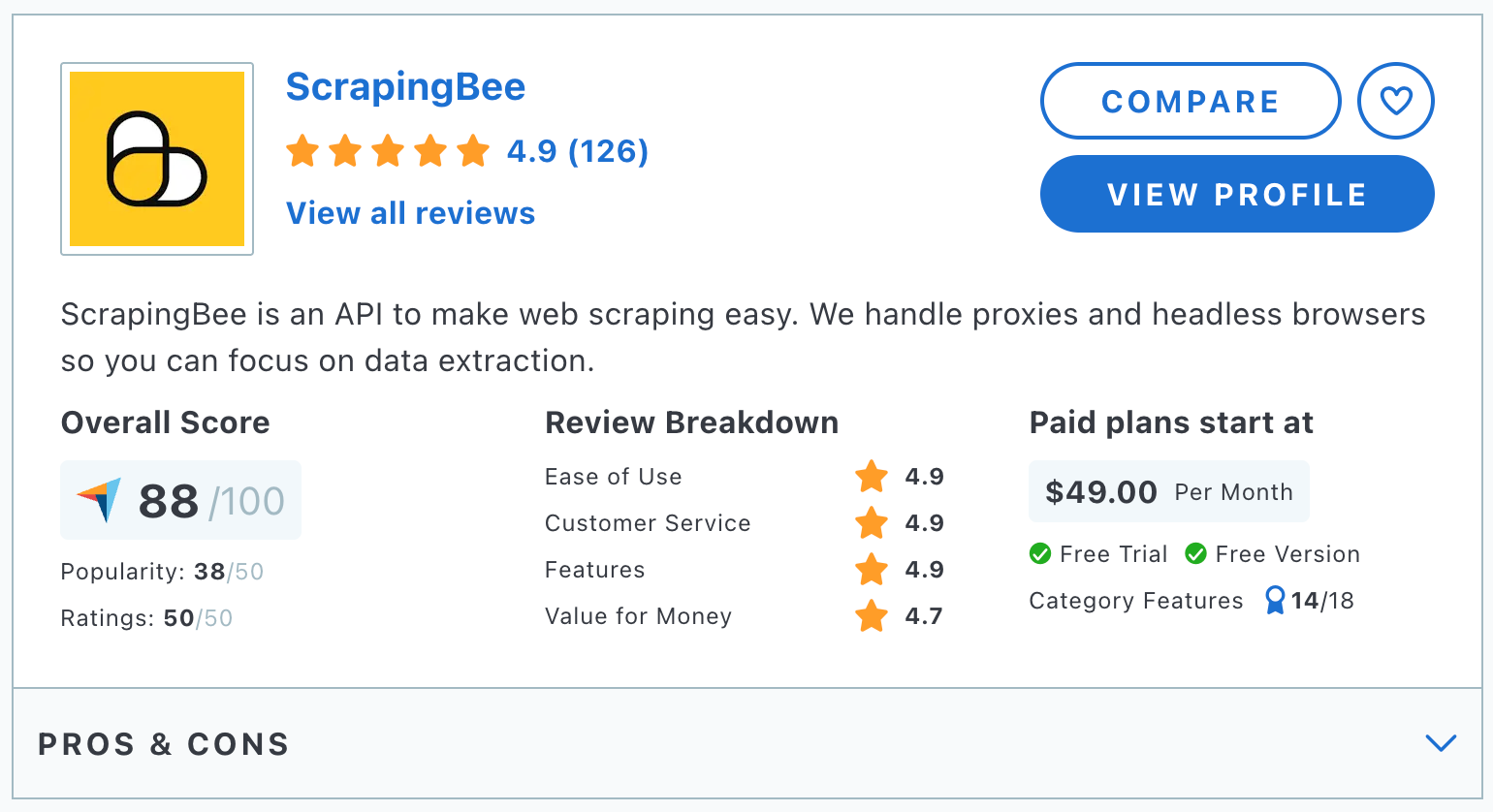 ScrapingBee is favored for its straightforward API that facilitates easy integration and rapid setup. The platform also offers efficient proxy management that rotates IPs to avoid detection and provides high success rates in data extraction.