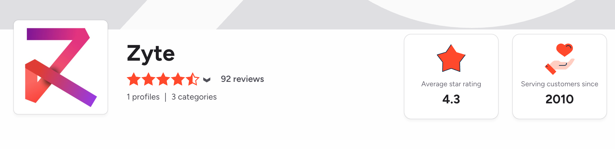 Zyte’s pricing is usage-based: you pay per successful scraped request, with costs varying by website difficulty and whether browser rendering is required. Monthly spending can range from just a few dollars for light scraping to hundreds or more for large-scale or complex websites.
