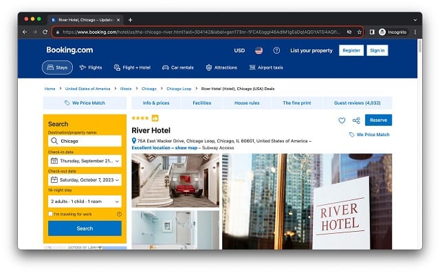 Alternatively, you can go onto the Booking.com website, search for Chicago, choose the dates and currency, choose the hotel you want to scrape, and press Enter. Copy-paste the resulting URL into the Start URLs field of the scraper.