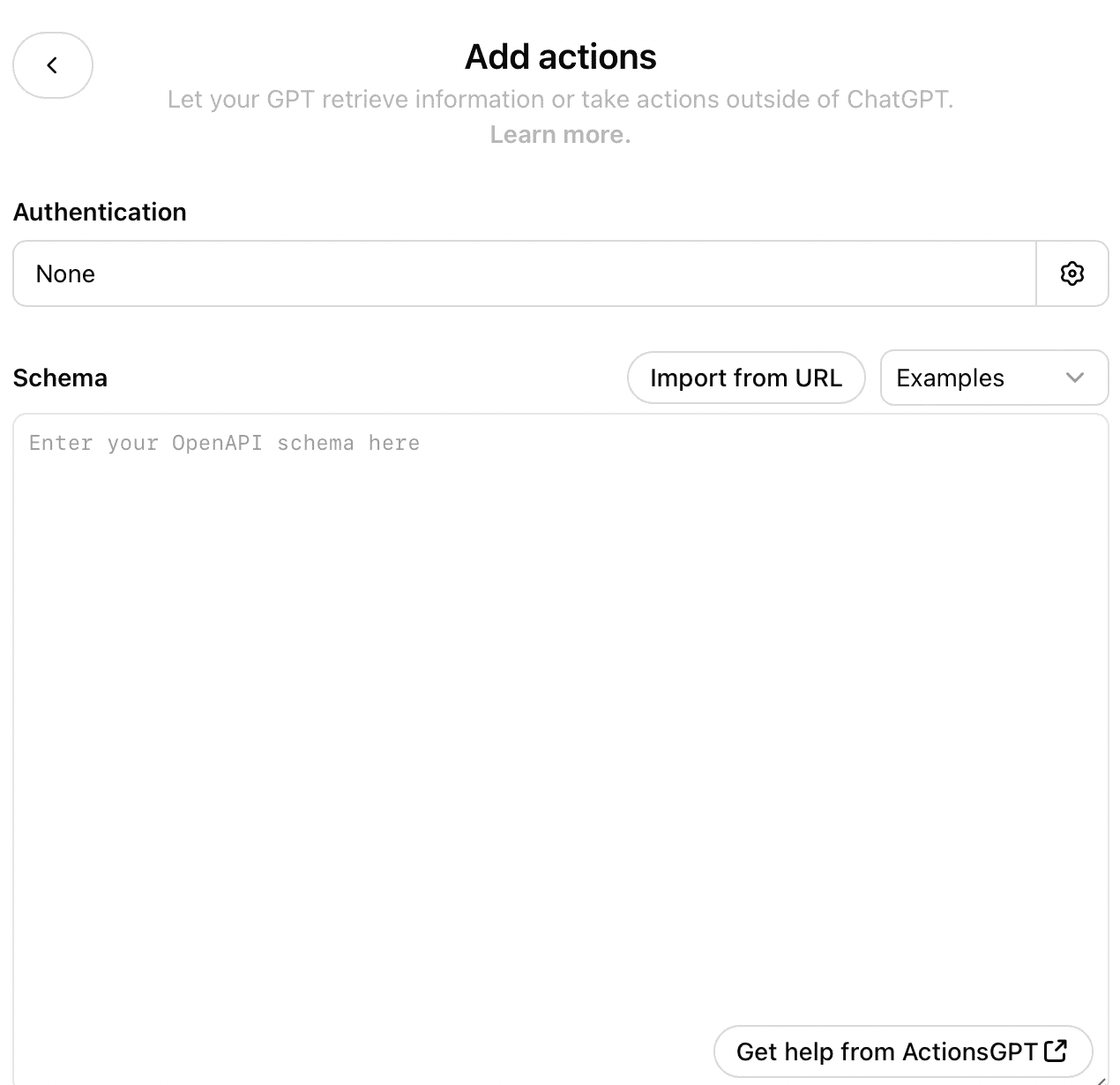 If you want the GPT to be able to take actions outside of ChatGPT, you can insert a schema for the application in mind.