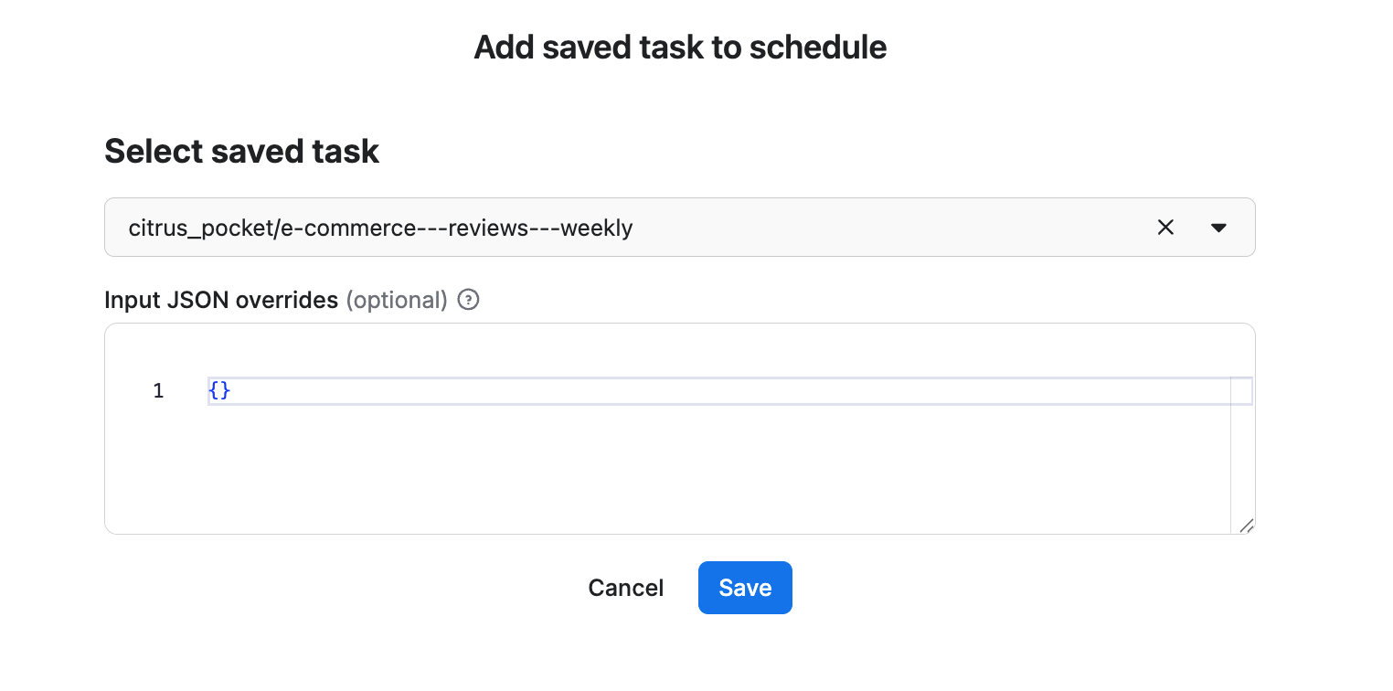 We’ve already saved our task, so now it’s time to add it to the schedule. Click Add task at the bottom to customize your schedule, select a task, and choose how often you want the scraper to run - weekly, monthly, or on any day that works best for you.