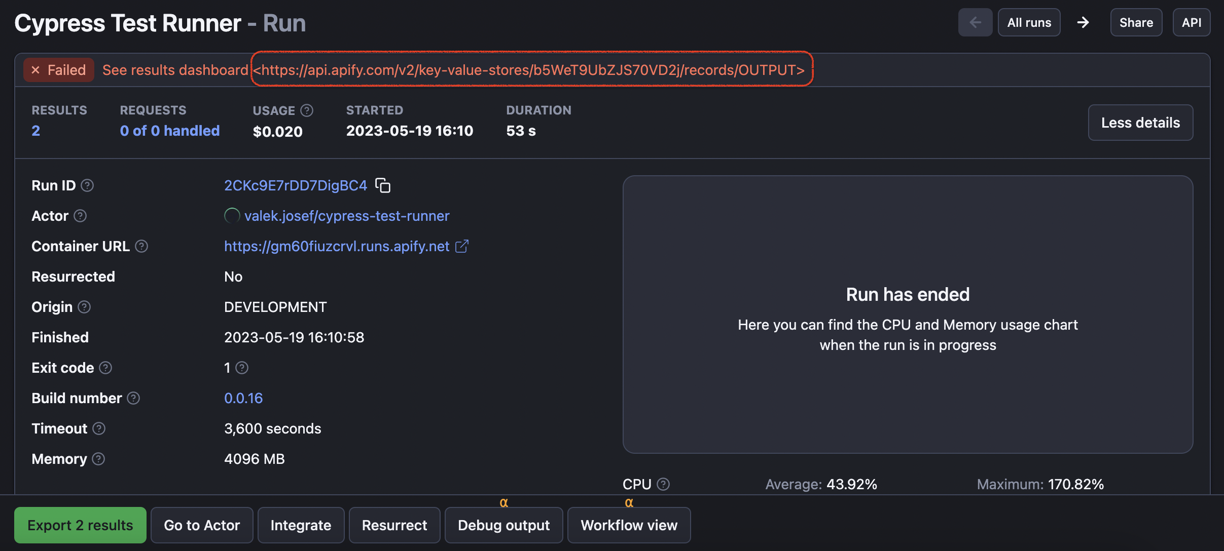 To see the test results, copy the dashboard link on the Run panel. The dashboard will provide valuable insights into your test runs, including detailed test results, metrics, and visual aids. You can use this information to analyze the performance and identify any issues or areas for improving your tests.
