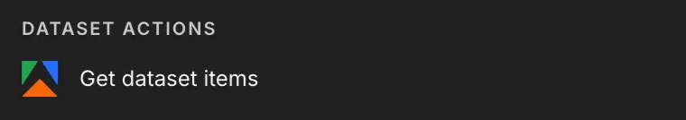 2. Select the Action named “Get dataset items”. This node actually collects the data once the initial trigger of running the scraper is completed.