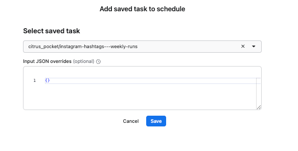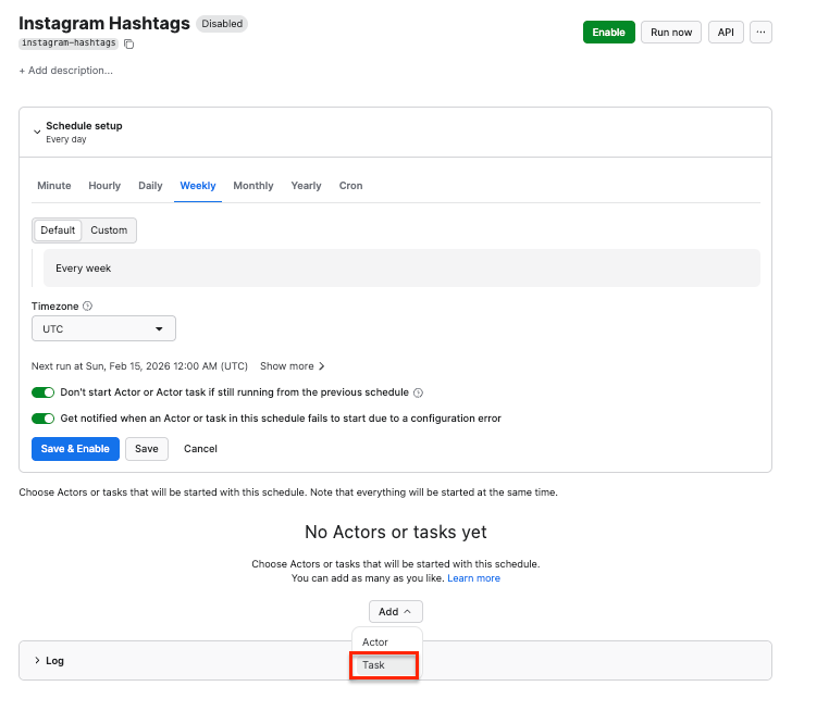 If you want to scrape hashtags regularly, you can schedule the scraper to run automatically and collect data without manual input.