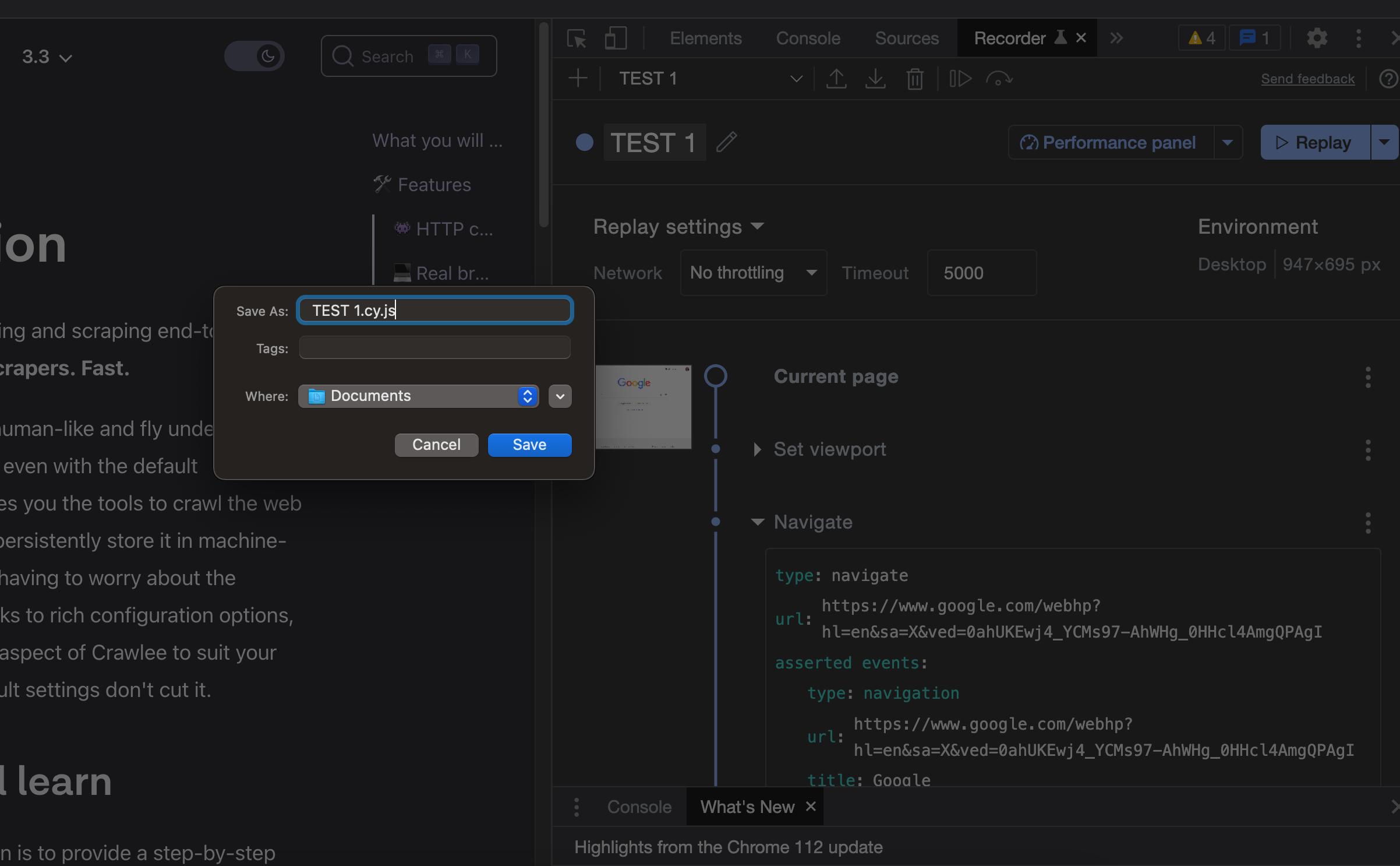 Perform the actions you want to record in Chrome: navigate to the website or app you want to test, scroll, click, enter some text into a form, submit the form, etc.