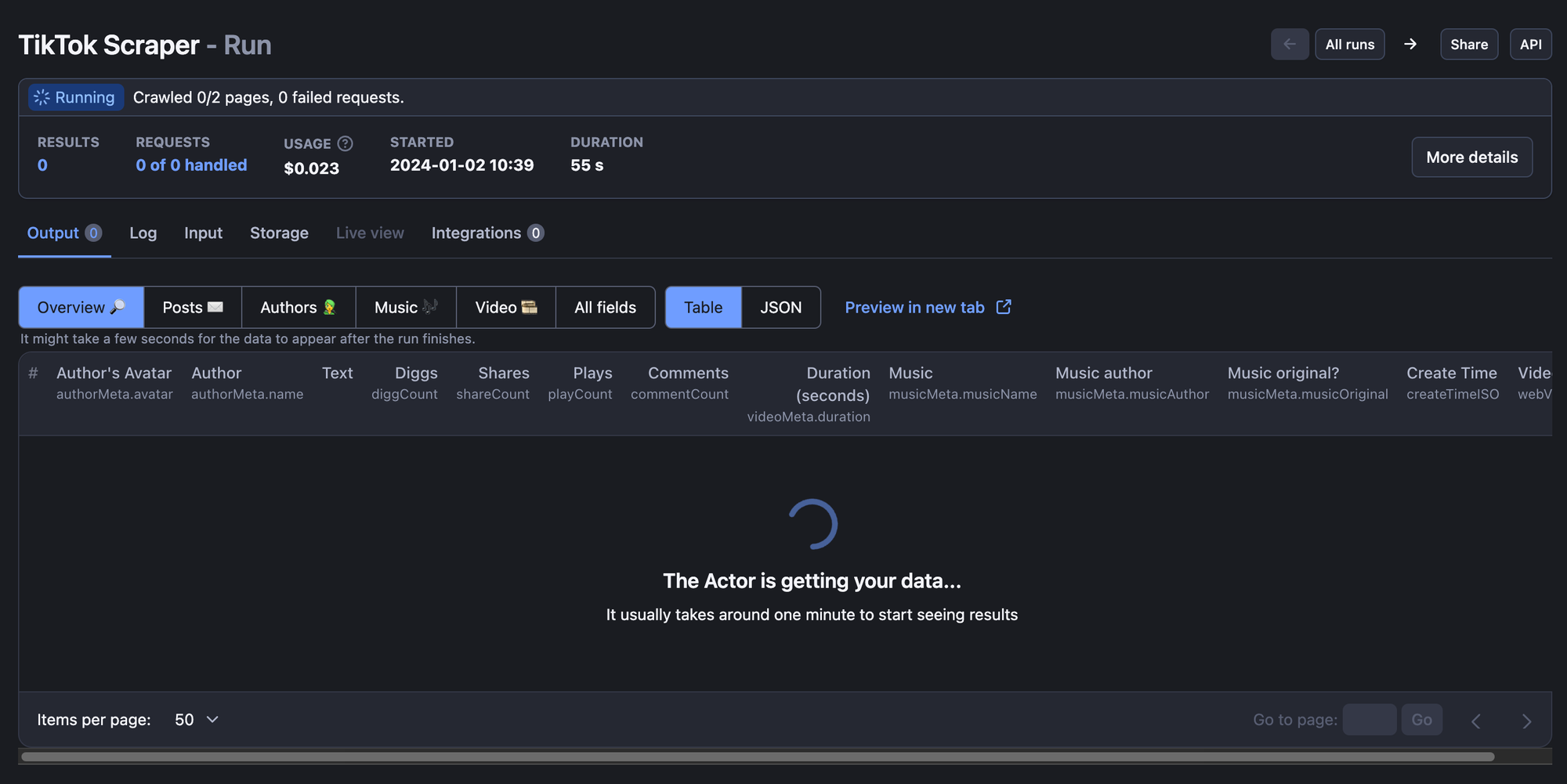 Once you are all set, click the Start button. Notice that the status will change to Running, so wait for the scraper's run to finish. It will be just a few minutes before you see the status switch to Succeeded.