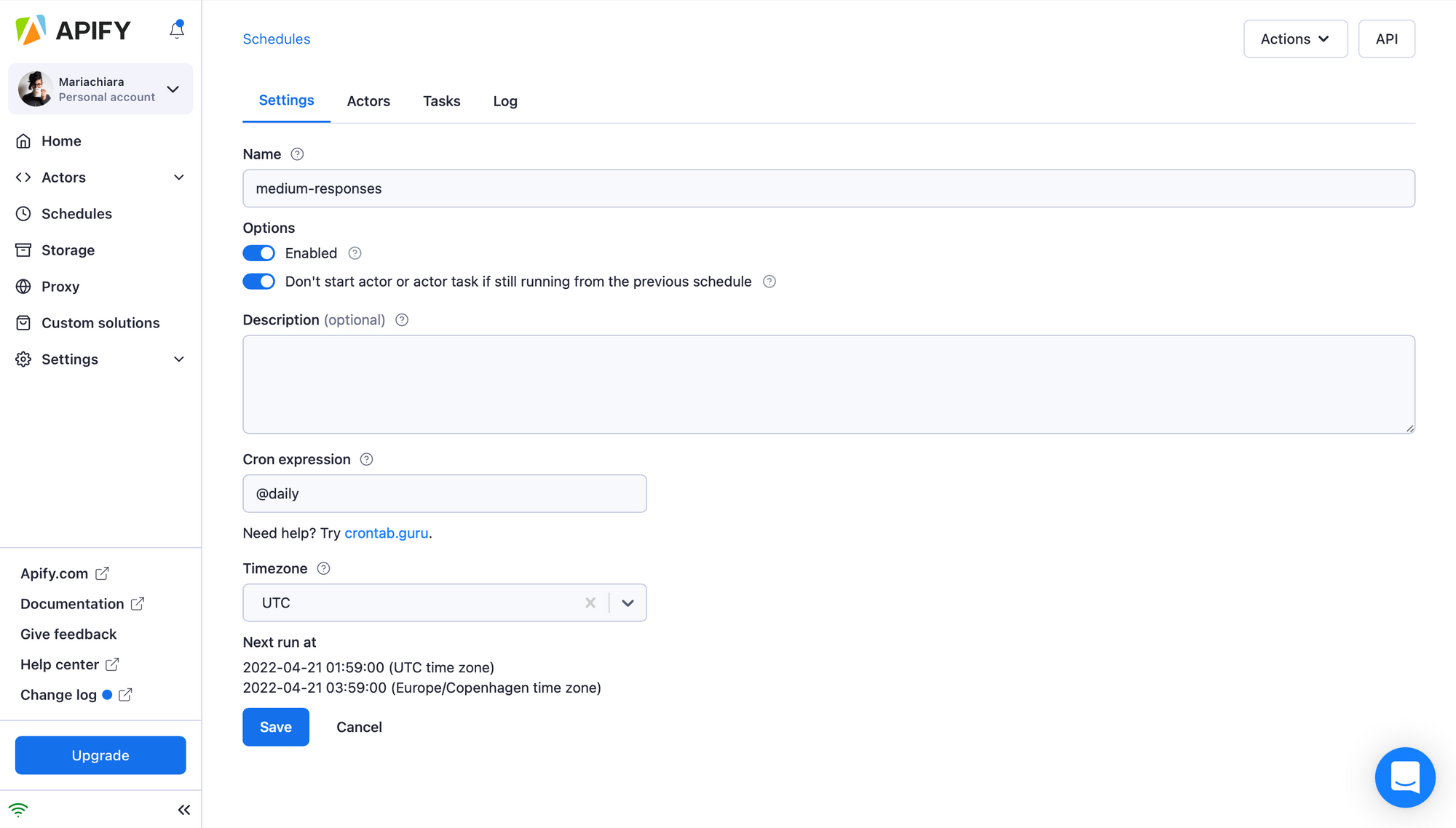 6. Create a new schedule. Then, in the Settings tab, name it, and set how frequently you want to run it. When you are done, click Save.