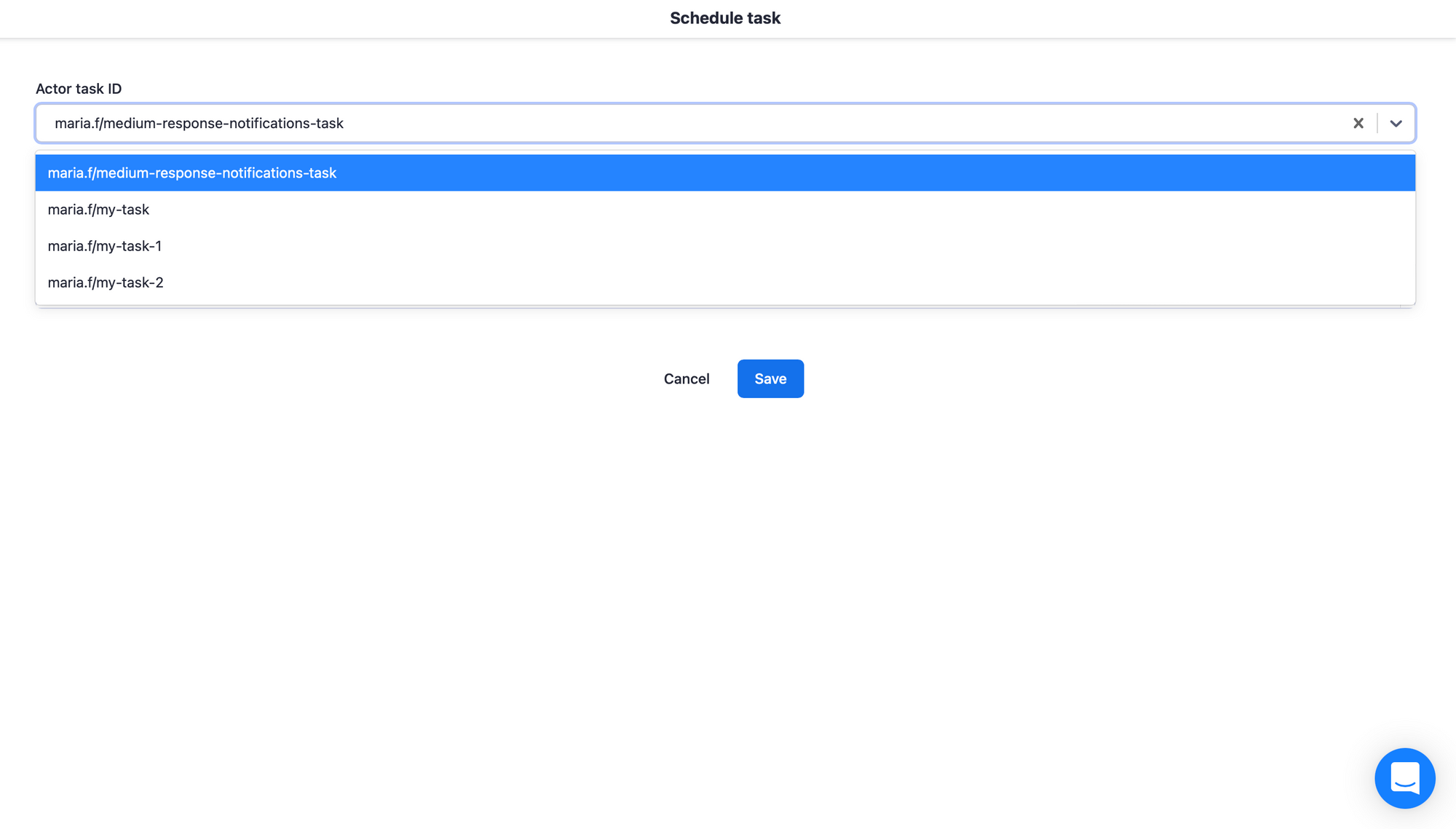 7. In the Tasks tab, select the task you created for the Medium notifications Actor in Step 3 of this tutorial from the dropdown menu, and click Save.