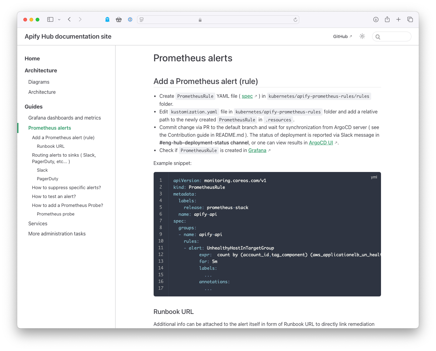Our developers don't have to learn new things - thanks to GitHub Actions and ArgoCD in the backend, they can create custom alerts directly from their favorite IDE.