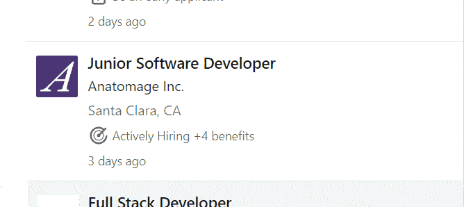 - Apply the filters you need to narrow down your search. In this case, I'm searching for jobs that match 'Software Developer' in 'United States' posted 'Any time".