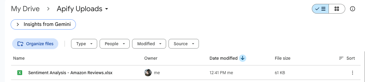 Now you can also check your Google Drive for a newly created spreadsheet with reviews. Each time you execute the scraper, it will automatically generate a new file with fresh data, ready for analysis.