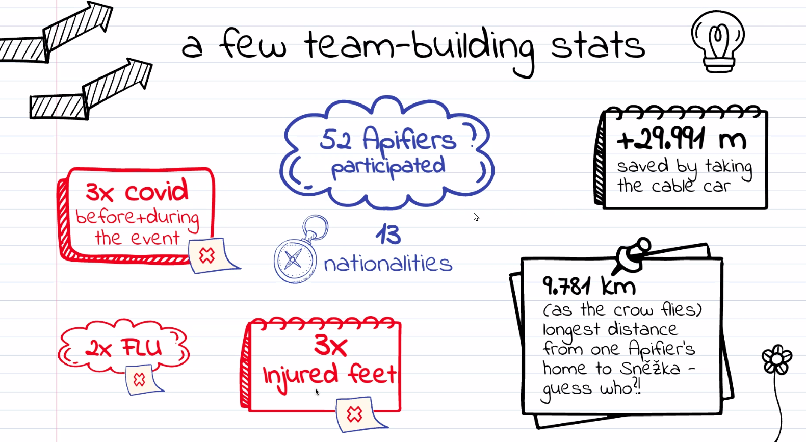 Anything that can go wrong will go wrong, as Murphy’s law states. And everything did go wrong just before our team-building retreat in the Czech Krkonoše, or Giant Mountains – from Covid and flu to injured feet and sprained ankles, and hitting all levels of Apify, from CEO to the event planner.