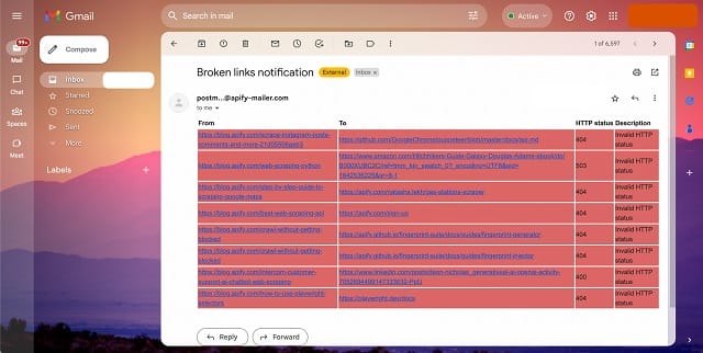 Bonus: schedule the scraper to run automatically once per a defined period: daily, weekly, monthly. You will receive the broken links notification paired with a report in your inbox once the job is done.
