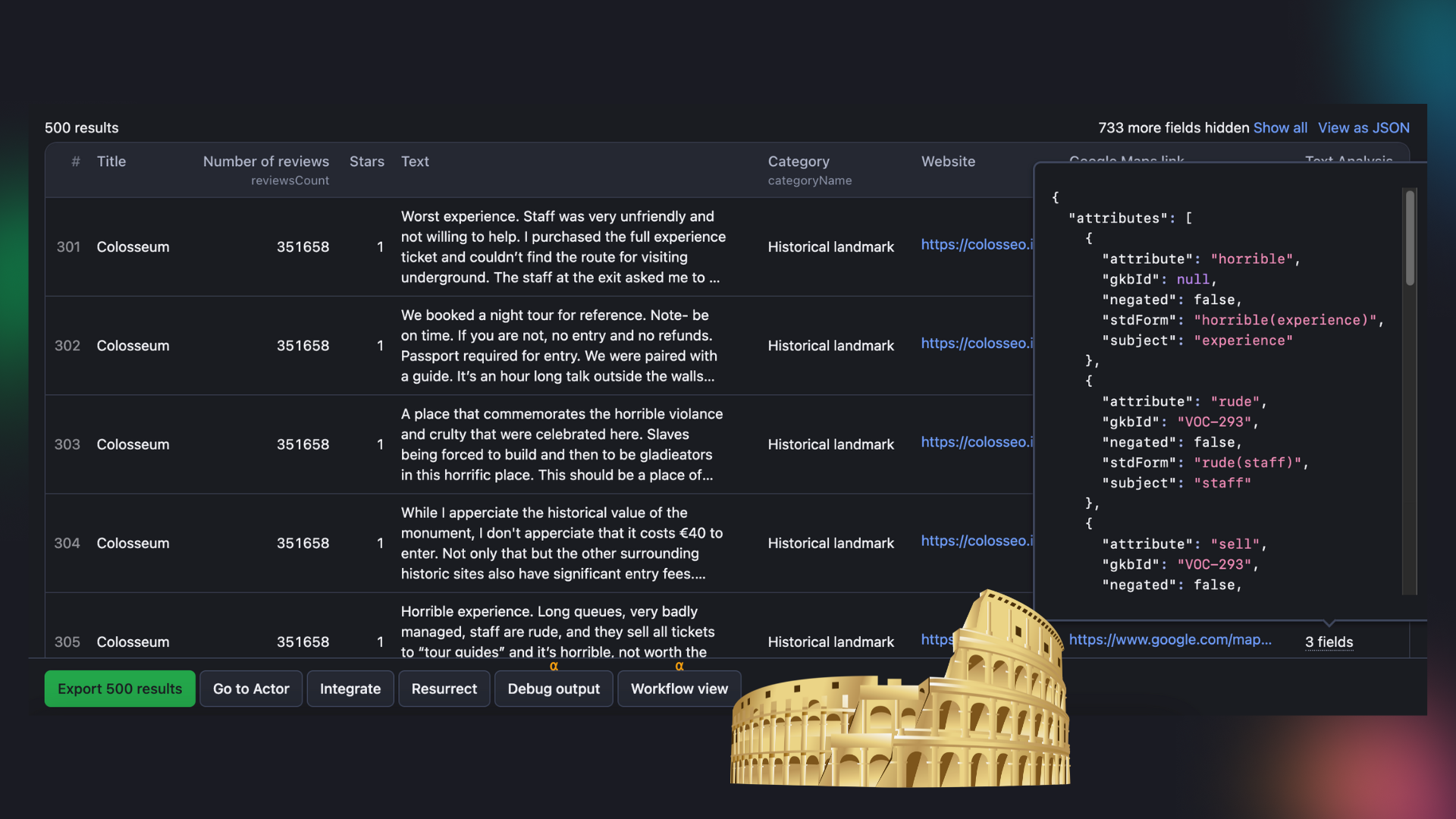 You can use this AI analyzer for text not only to analyze reviews of tourist attractions and public spaces. You can choose to analyze restaurants, banks, shops, hospitals, galleries, and whatever else there is on Google Maps that people care to leave a review about. By extracting, translating, and doing even the simplest analysis of reviews, you can understand visitor sentiments better, identify patterns faster, and make your business stronger.