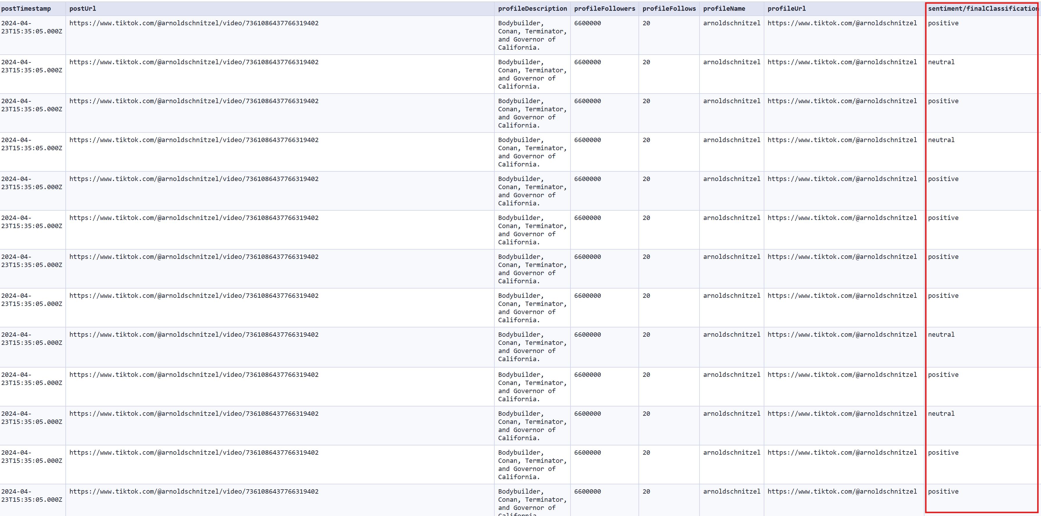 The results include not only the comments but also the analysis - whether they're positive, negative, or neutral