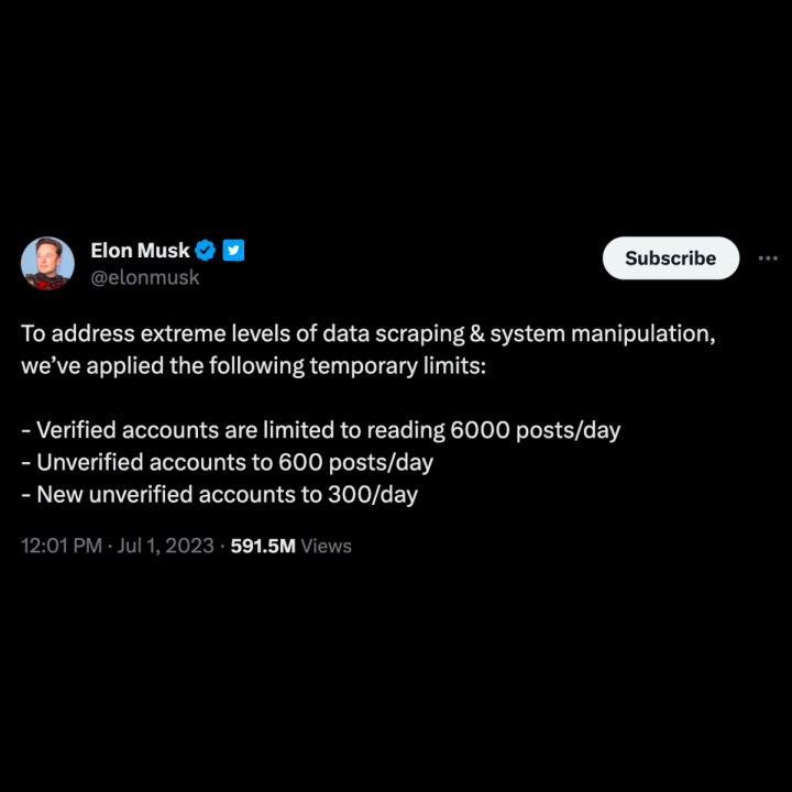 Elon Musk, the tech mogul, made headlines with public promises to take legal action against web scraping companies. This move was followed by X adding and then silently removing the login requirement for viewing posts (tweets) and following through with the promise by initiating lawsuits against 4 unknown individuals. And before all that, Musk has made Twitter API paid. But let's follow step-by-step here.