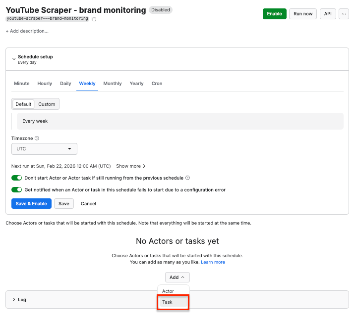 If you want to monitor YouTube mentions regularly, you can schedule the scraper to run automatically and collect data without manual input.